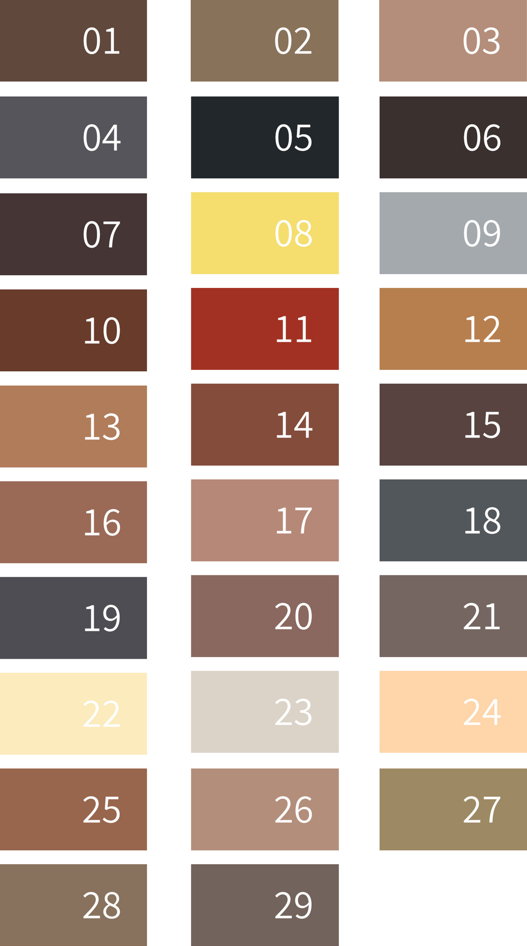 Color Variations: 31 options (e.g., Dark Brown, Light Coffee, Gray, Black, Vibrant Red, etc.)